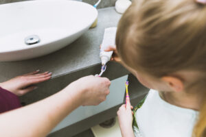 – Le dentifrice : il est fabriqué sans fluor et sa formule bio permet un nettoyage en douceur des dents en respectant leur émail.